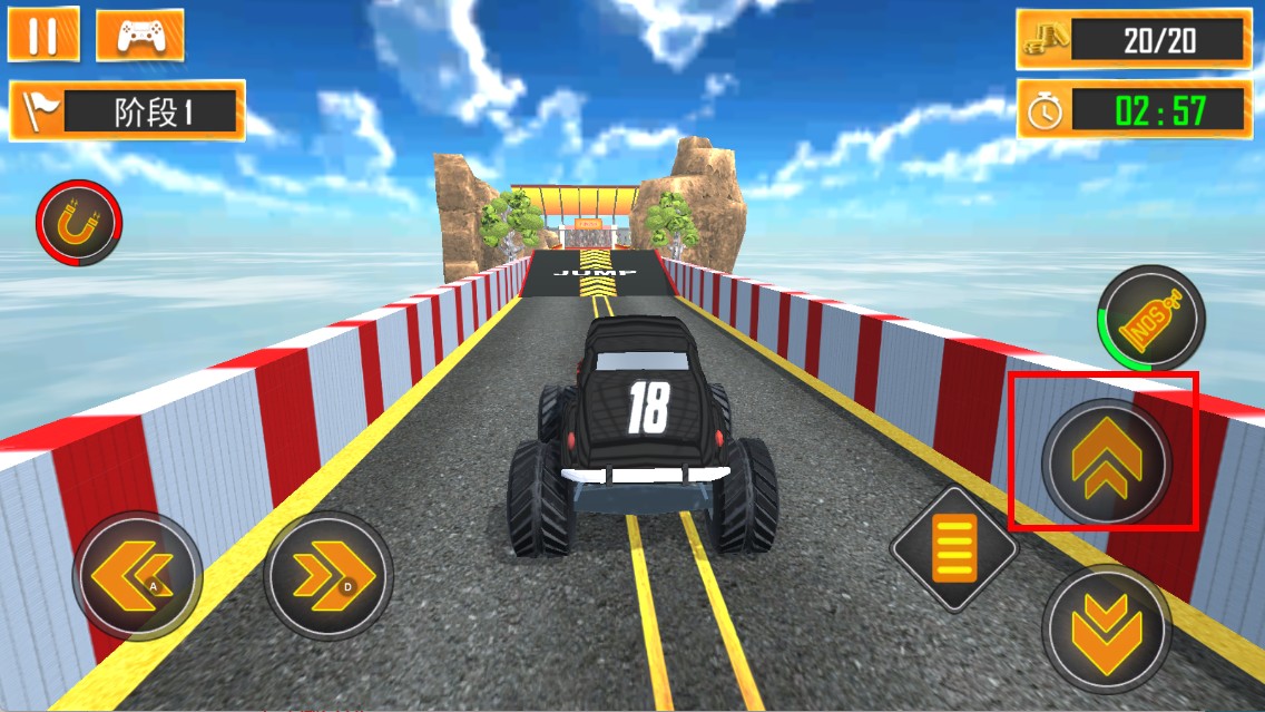 3、点击右侧向上箭头按键,能让黑色怪物卡车加速前进。