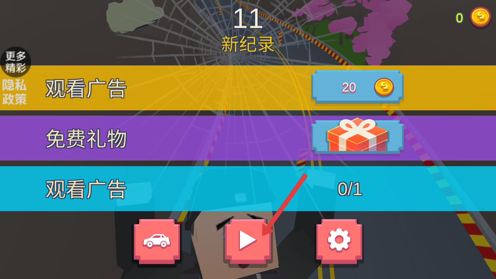 4、游戏结束后,可点击播放按钮重新开始挑战。