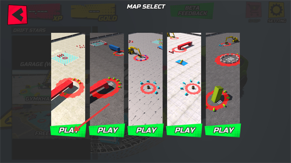 4、漂移练习:在地图特定场景练习漂移技巧,得分越高获得经验越多,通过反复磨练提升操控精度和赛道表现。