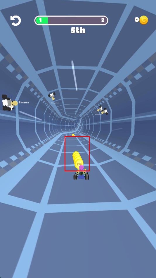2、过程里,操控赛车收集赛道上的金币,积累资源。