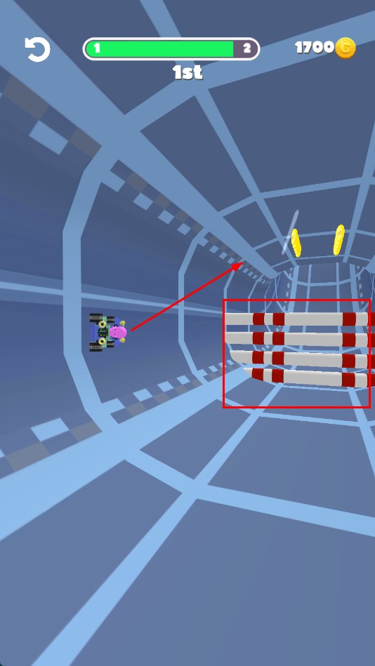 3、注意躲避红白相间的障碍物,赛车向上正常行驶,争取更好名次。