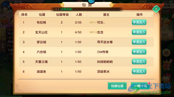 3、由上往下是各大仙盟的排名,找到自己心仪的仙盟加入。