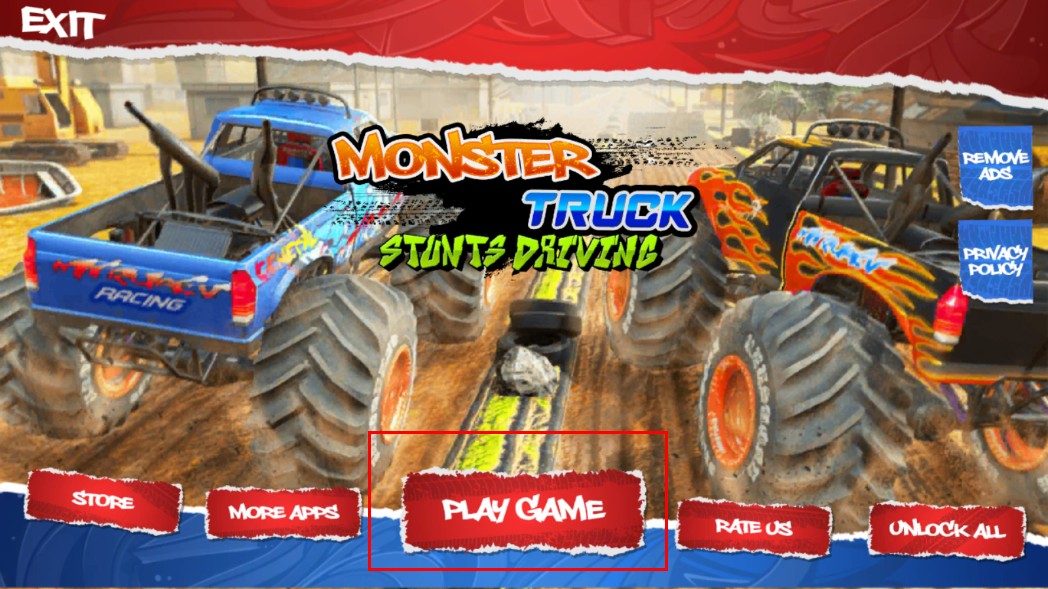 1、点击【PLAY-GAME】按钮,驾驶怪兽卡车开启挑战,进入赛道。