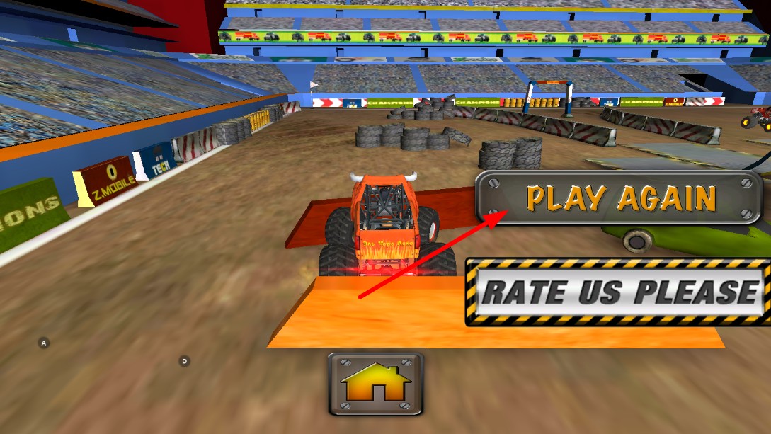 1、点击带有怪物卡车图案的【PLAY】按钮,即可开启游戏挑战。
