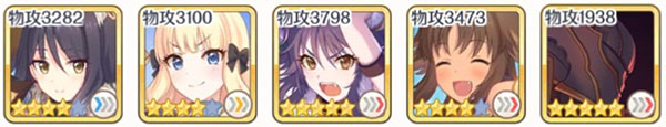 如果练度不够,可以换成T(黑骑/布丁/望)+狼姐+辅助角色(猫剑/姐姐/可可萝/黄骑)+深月+暴击弓