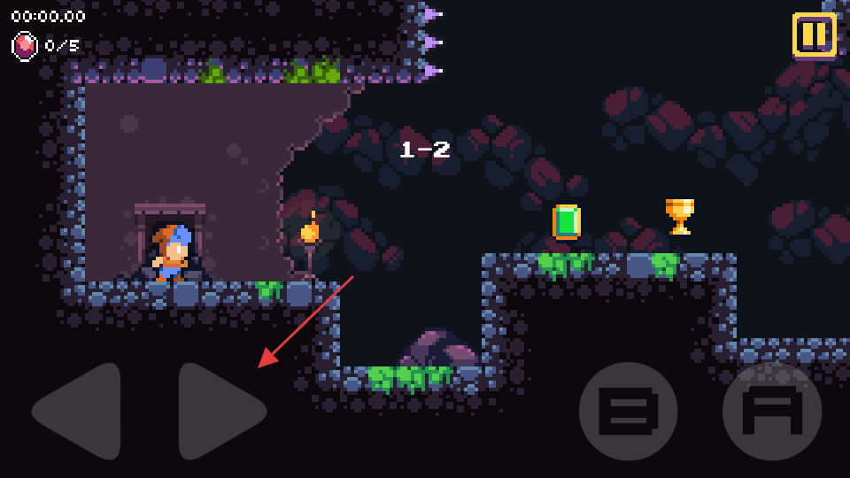 3、进入游戏关卡后,通过点击左下角的方向键控制角色移动,按右下角的按键进行相应操作,收集物品,推进关卡。