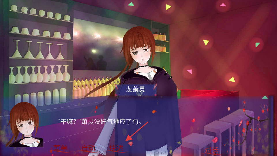 3、进入游戏剧情对话界面后,可使用如箭头所指的【快进】功能,加快对话播放速度,推进剧情发展。