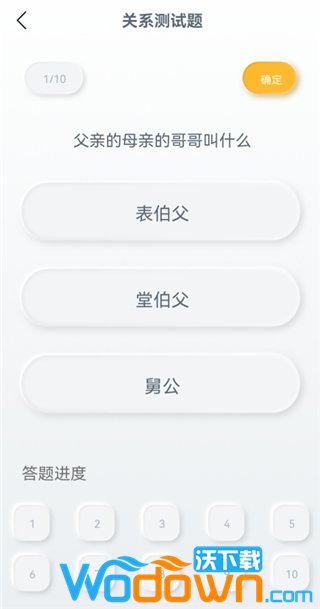有趣的关系测试题点击【测试】进入测试环节,系统将随机出题,共有十道题目,帮助你检验对亲戚关系的掌握程度。