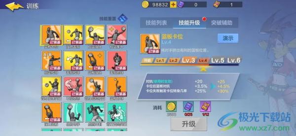 4、技能上的升级优先选择盖帽和扣篮。