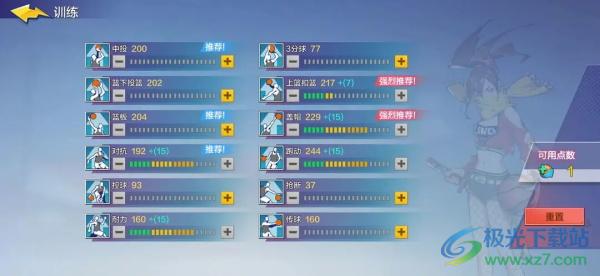 5、加点的选择比较多样,可以根据自己打法的不同自由选择,但是跑动和盖帽是必点的。