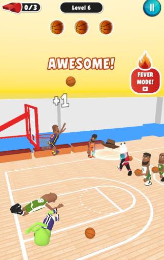 2、拖动人物起飞,瞄准篮筐,将篮球扔进篮筐,获得相应分数
