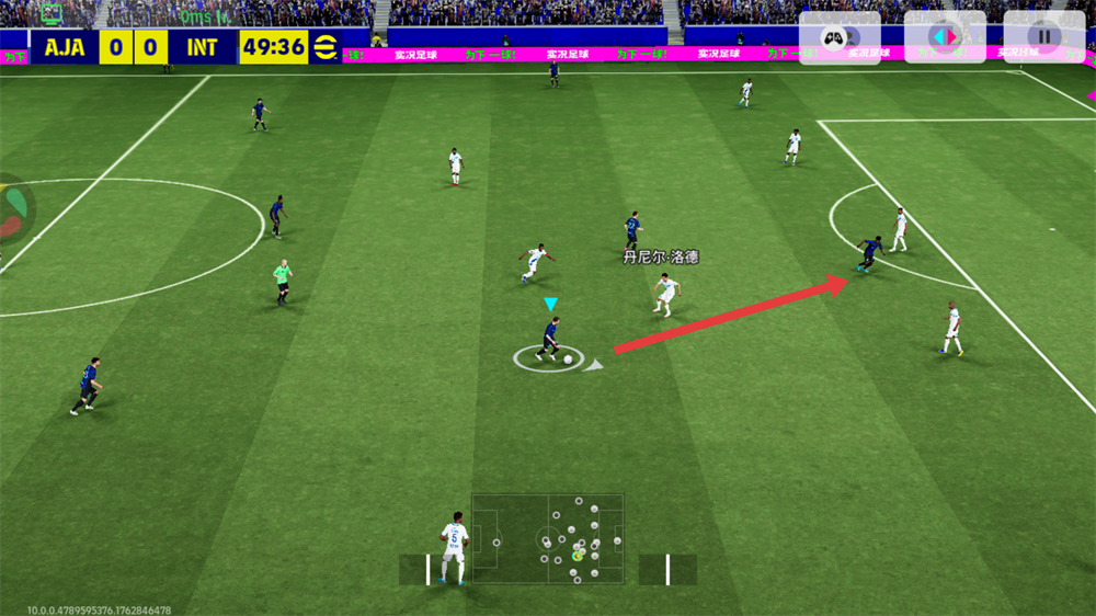 2、不要轻易上抢,对方拿球时,按住右侧逼抢左手控制方向不要冲上去,跟着他,看他可能的传球路线,并把球员放在这个路线上,当对方传球是就会自动拦下了。