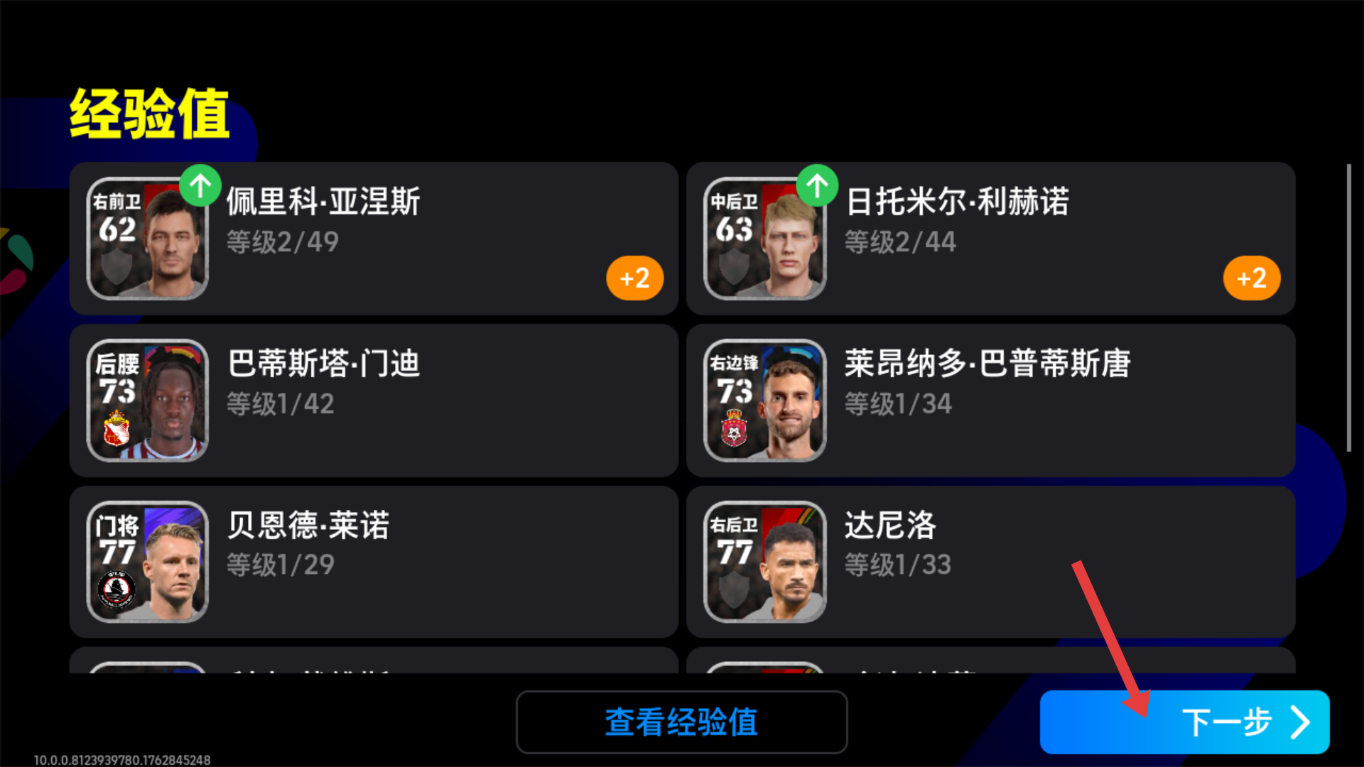 4、完成升级操作后,点击【下一步】开启新比赛,继续在绿茵场上征战,向着更多胜利和荣誉迈进啦。