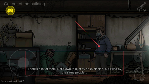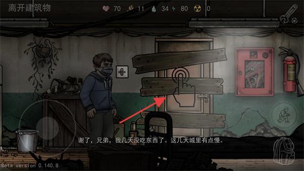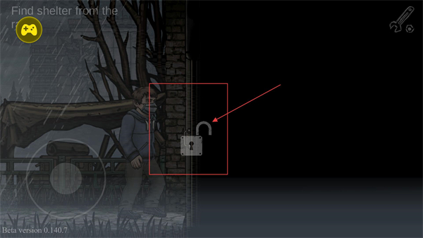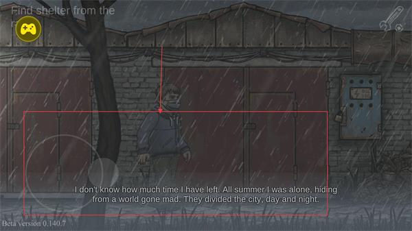 1、进入游戏后,可根据提示屏幕下方的提示,玩家需要操控角色寻找避雨处,推进剧情以逃离危险环境。