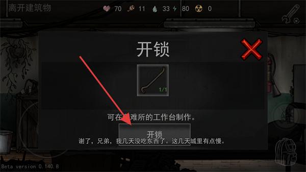 4、在“开锁”弹窗中,选择对应的工具(如撬棍),点击“开锁”按钮,解锁被封的门,推进剧情。