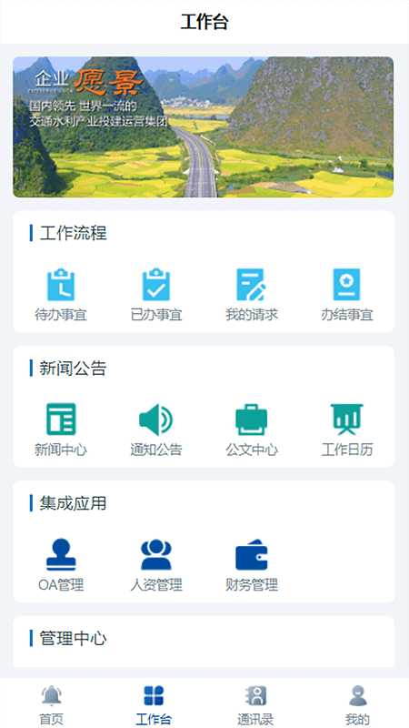湖南交水建app是一个为交水建单位打造的办公管理软件,在这里拥有详细的工作流程——待办事项、已办事宜、我的请求、办结事宜。软件进行了新闻公告、集成应用和管理中心专区,智能工作台辅助用户提升办公效率,还有通讯录服务,有需要的快来下载吧。