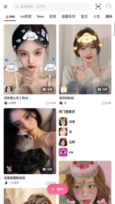 快来试用各种绝美滤镜、贴纸和美颜效果吧。