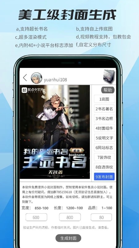 生成工具:提供小说封面生成,各类名字生成,服饰生成,网游装备生成,词库等等。