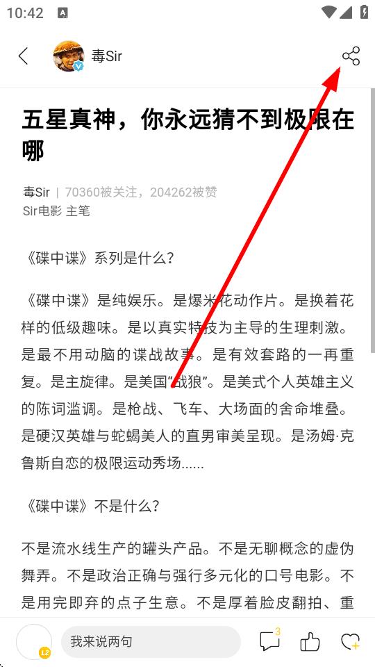 3、在文章详情页,点击右上角的分享图标,弹出分享选项。