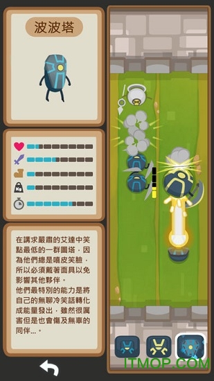 图塔图塔是一款有些许策略元素的休闲对战游戏,你可以游玩我们提供的四种特色阵营,他们分别是「耶利拉」、「黑尼度」、「艾达」、「废地」,每个阵营都有自己的独特图塔士兵,如何去组合士兵之间得能力用最少的士兵换取敌人更多的士兵,就是胜利的关键