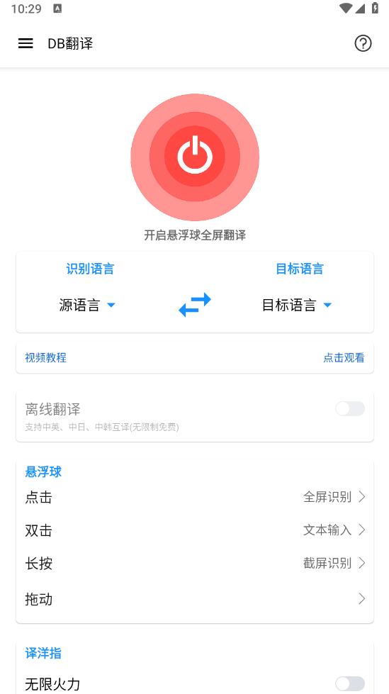 1.点击浮球进行全屏翻译,长按浮球进行屏幕截图翻译,双击文本输入,使用其他软件与国际朋友聊天时使用。