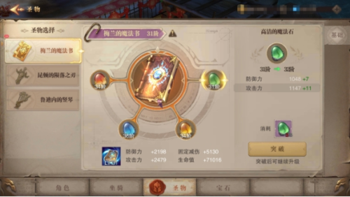 神圣的魔法石:激活、培养、突破可以增加固定减伤和防御力