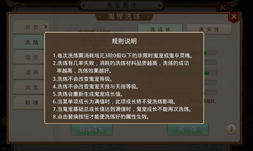 鬼宠洗炼无法使用归元露,需要直接消耗鬼宠。由于鬼宠都需要通过抽取获得,所以这里建议:如果平民不准备培养鬼将、鬼仙,培养任何一只除阴阳师之外的鬼卒即可。