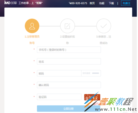 随后会进入详细的注册页面,这里分部分介绍:先输入手机号码,姓名,密码,验证码,点击立即注册。如图所示