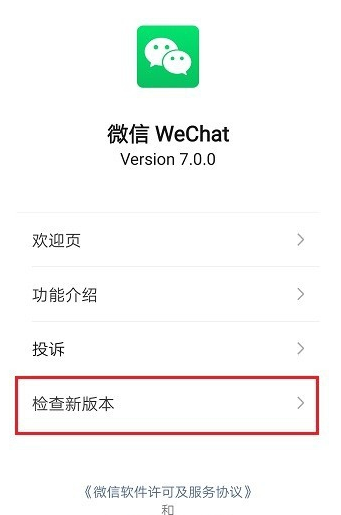 第二步我们来检查一下手机的微信版本,进去我的界面之后,点击设置->关于微信->检查新版本,如下图所示: