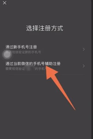 6、然后就要选择注册新账号的页面中,点击【通过当前微信的手机号辅助注册】;