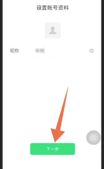 14、然后就会跳转到设置账号信息新页面,想到一个微信昵称填入,点击【下一步】;