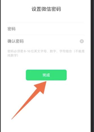 15、最后设置微信密码再点击【完成】,然后确定密码点击完成,就可以成功注册第二个微信号了。