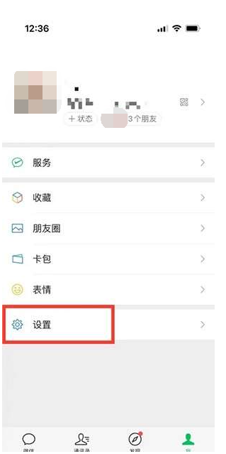 1、首先我们打开微信,点击右下角的我,再点击设置。