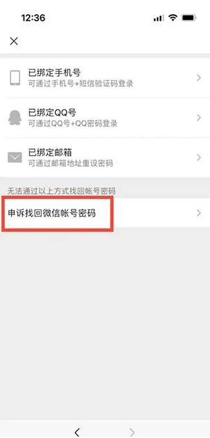 5、最后我们点击申诉找回微信账号密码,重置登录密码,用密码登录即可。