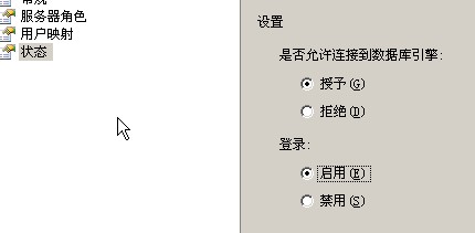 (二)“安全”==》“用户”==》双击用户sa(弹出属性对话框)==》“状态”
