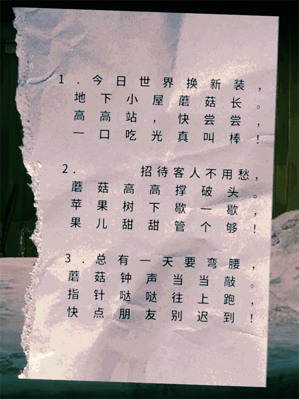 与老人对话后,床头柜上会多出一张字条,里面有一个谜题。