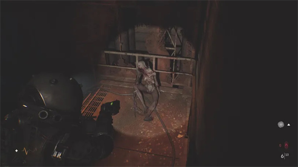 在前方,你会发现一个“沉睡”的抓墙机旁边有一个易碎的大板条箱。它是活的,如果你打破盒子,它就会抓住你。射杀它,然后夺取你的战利品。走廊的尽头是一扇铁链门。使用断线钳进入内部,在那里你会找到一本漫画书、一个治疗物品和一个能量库来出售。
