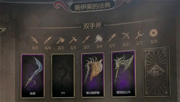 在游戏主界面的法典中可以看到共有四把双手斧;