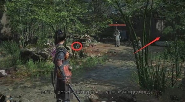 玩家到含光禅院那里的竹子院里挺敌人聊天:被抓来的两个小孩,大的跑了,小的脑袋掉了还死死抓着面人。