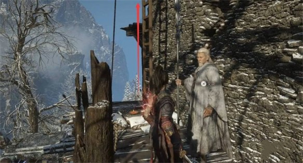 在云顶外城的神龛附近,靠近烽火台核心区域时,快到塔顶时瞥见白袍老者。