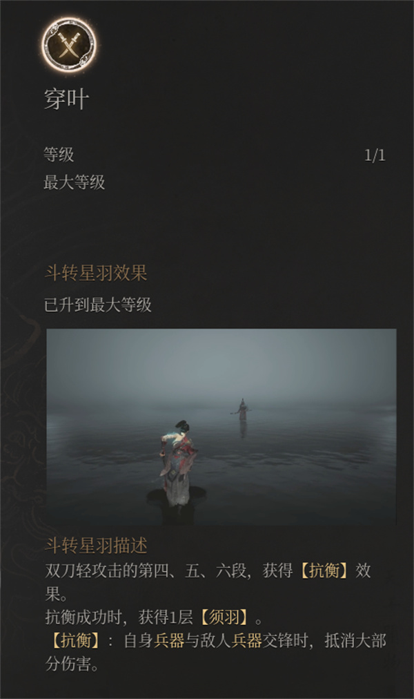 双刀的核心玩法就是抗衡,意思是当我们与敌人的武器交锋时,可以抵消大部分的伤害,而且还能获得一层须羽,再利用术语来强化自己的能力。