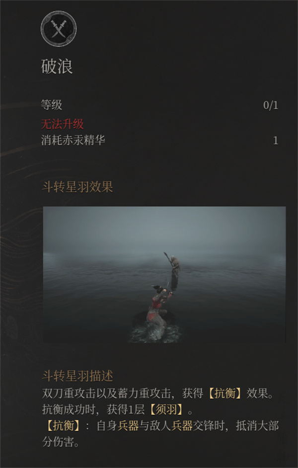 在中后期点数开始较为充裕时,则建议点破浪与飞花,让我们的重攻击与垫步轻攻击也具有抗衡效果,然后把增加能力的大节点都陆续点起来。