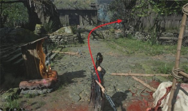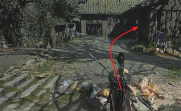 1、玩家可以从佛源镇的含光禅院神龛位置出发,面对神龛正面往右走上楼梯。