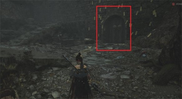 2、一直走到可以看到贴了符咒的木门,开门继续走。