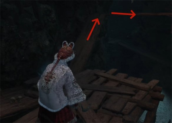 1、玩家需要传送到神龛“竖井入口”,接着进入洞窟,跳到桥下的木板上。