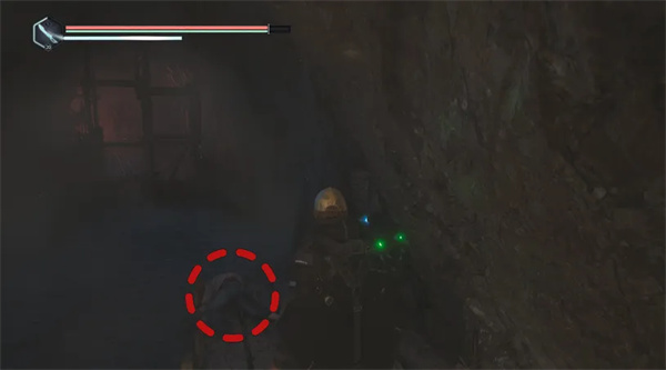 沿着隧道向左走,到达破碎的木制走道后下降。向右走,爬上梯子,然后从另一边下来,在第一个左转进入另一个隧道。