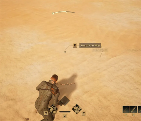 快速找面粉砂:使用手持资源扫描仪可精确定位附近的矿脉。观察地面上的白色烟雾,这是面粉砂的明显特征。