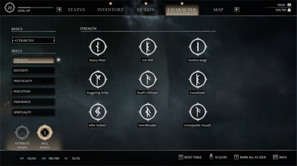 力量属性:每增加一点提高近战伤害(+3%),提高护甲(+3%),降低攻击和格挡的耐力消耗(-2%)。