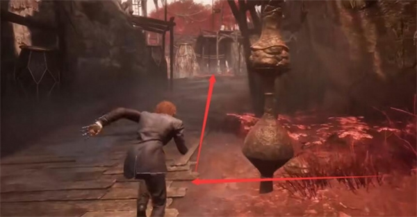 3、在前方还有一个路口,继续右转走可以看到一个屋子。