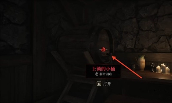 4、即可找到一个超级困难锁的酒桶宝箱。